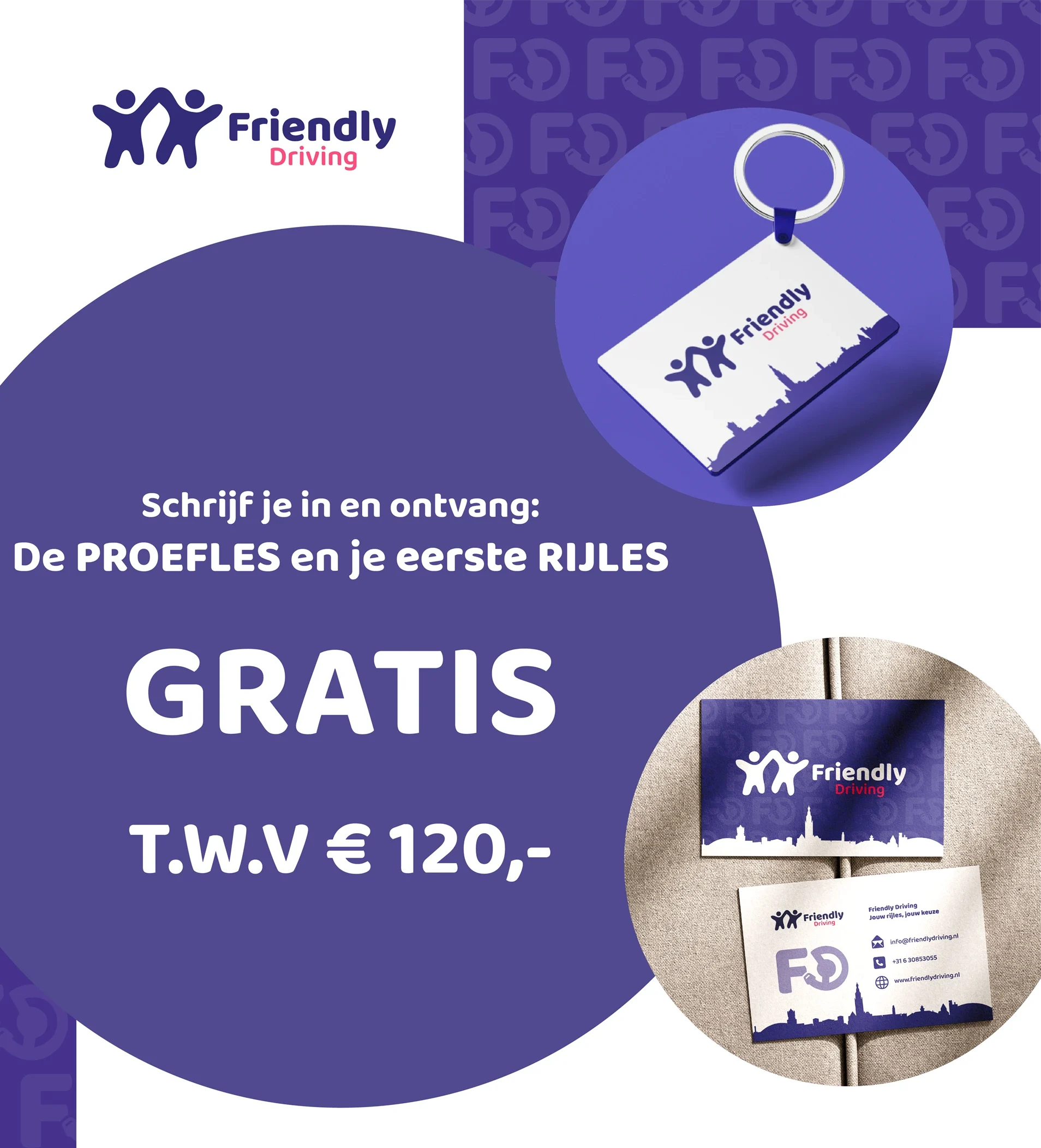 Meld je vandaag nog aan en maak gebruik van onze instapkorting! Je krijgt de eerste proefles t.w.v. €55 én de eerste rijles t.w.v. €65 helemaal gratis – samen goed voor €120 korting. Zo maak je op een laagdrempelige manier kennis met onze manier van lesgeven. Een ideale start richting jouw rijbewijs.